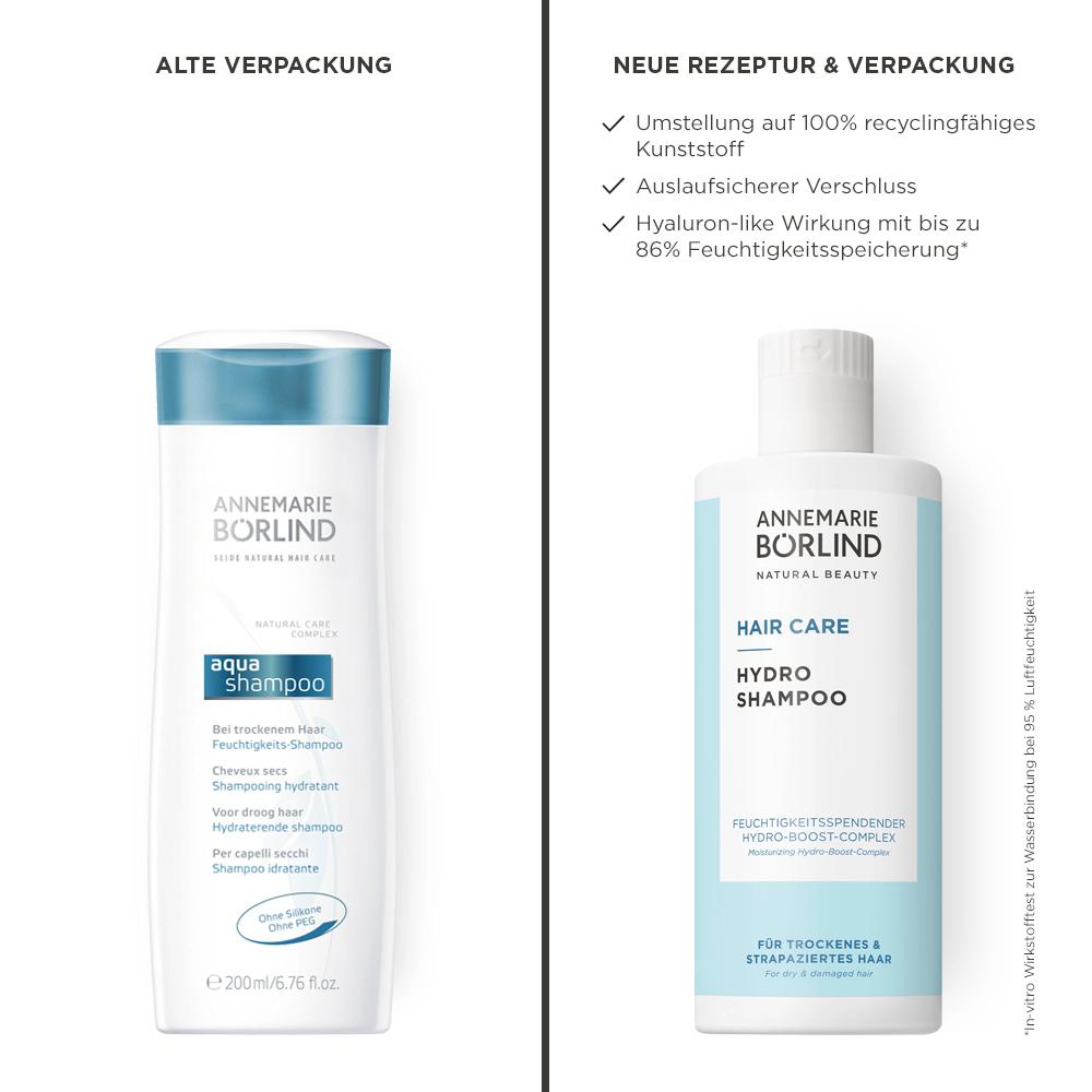 HYDRO SHAMPOO – Intensive Feuchtigkeit für trockenes HaarDas HYDRO SHAMPOO mit dem innovativen Hydro-Boost-Complex aus feuchtigkeitsaktivierender Hyaluron-like Rotalge und Aloe Vera spendet Ihrem Haar intensive Feuchtigkeit und stärkt es nachhaltig. Dank Multimoist CLR™ bleibt die Feuchtigkeit lang erhalten, für geschmeidiges, glänzendes Haar. Microbiom-freundliches Biotensid –Unsere Basisformulierung kombiniert mildes mikrobiom-freundliches Biotensid mit innovativen, natürlichen Inhaltsstoffen. Für sichtbar gepflegtes Haar, ohne zu beschweren - vom Ansatz bis in die Spitzen.- Intensive Feuchtigkeit & Stärkung - Langanhaltend hydratisiertes, glänzendes Haar - Sanfte, dennoch effektive Reinigung mit mikrobiomfreundlichem BiotensidFür Geschmeidigkeit und leichter kämmbares Haar - Ideal für stumpfes, trockenes Haar!