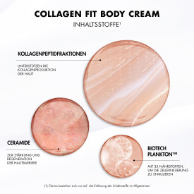 Tauche ein in das Erlebnis strafferer und prallerer Haut mit der Collagen Fit Körpercreme von Biotherm. Diese reichhaltige Creme, angereichert mit nährstoffreichen, kraftvollen Kollagenpeptid-Fraktionen, verleiht der Haut mehr Straffheit und Festigkeit. Die innovative Formel mit Biotech-Ceramide unterstützt die Stärkung der Hautbarriere und spendet bis zu 100 Stunden Feuchtigkeit. Die rosa-cremige Textur enthält lichtreflektierende Perlen, die Deiner Haut sofort einen goldenen Schimmer verleihen, während der zarte Duft nach Vanille, Pistazie und Bergamotte ein Dufterlebnis erzeugt, dass man fast schmecken kann. •Körpercreme mit +93% Kollagen Boost für straffere & festere Haut •Sichtbar prallere Haut mit bis zu 100H Feuchtigkeit•Verwöhnender Duft von Vanille, Pistazie und Bergamotte•Verleiht einen sofortigen goldenen Glow•Schnell einziehend