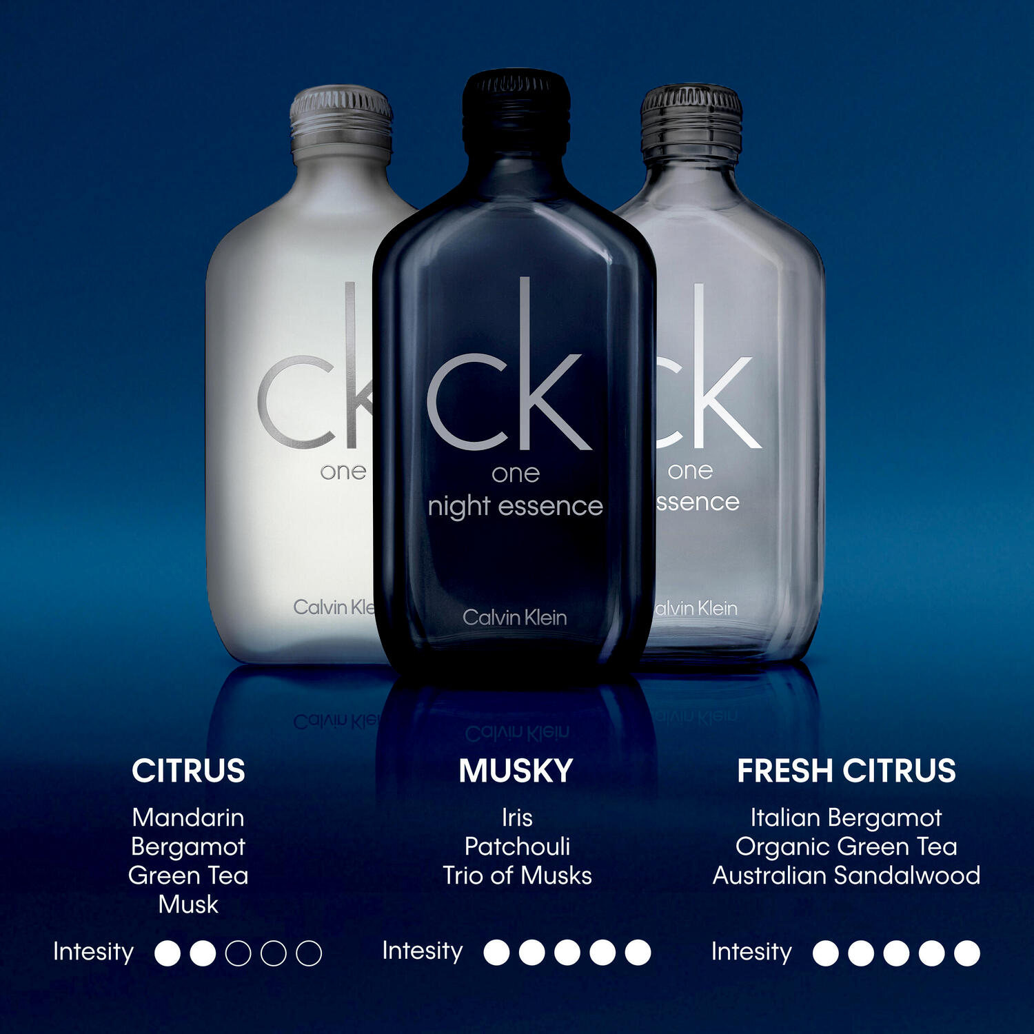 Inspiriert von der Vorfreude auf die Nacht und dem energiegeladenen Moment, wenn der Tag zu Ende geht und alles möglich erscheint, vereint CK One Night Essence ledrigen Irisnoten mit üppigen Amberfacetten, warmem Patchouli und faszinierenden Moschusnoten. In der gleichen Intensität von CK One Essence gewinnt dieser neue verführerische Duft durch einen mutigen Kontrast an Tiefe und Kraft. Entdecken Sie den neuen Duft von Calvin Klein.