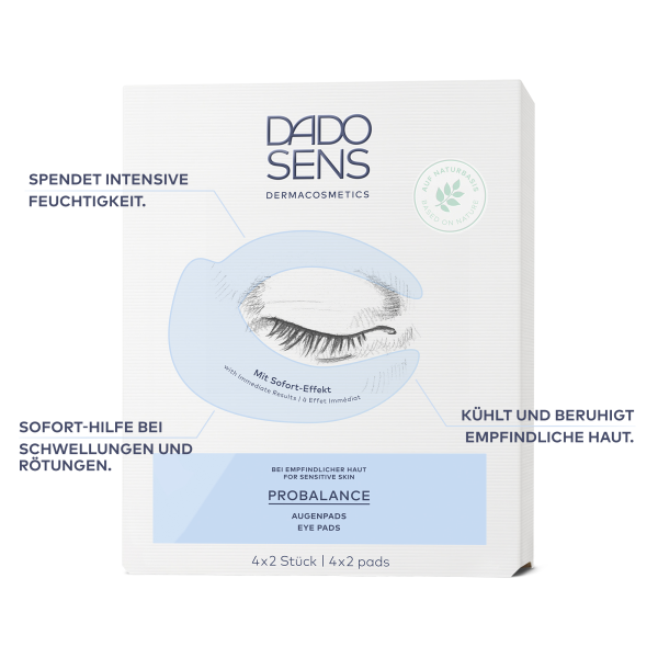 PROBALANCE besänftigt empfindliche Haut mit schützender Pflege. AUGENPADS: Die Sofort-Hilfe bei Schwellungen und Rötungen rund um das Auge. Pflanzliches Glykogen, gewonnen aus einem patentierten ökologischen Prozess, spendet langanhaltende Feuchtigkeit, die sich durch den Einsatz von Hyaluronsäure verstärkt. Gerste kühlt und beruhigt die empfindliche Haut und schützt sie vor freien Radikalen. Seidenbaumextrakt mildert Augenringe und Schwellungen. Für einen Moment der Erholung und eine frische, entspannte Augenpartie. Dermatologisch und augenärztlich getestet.