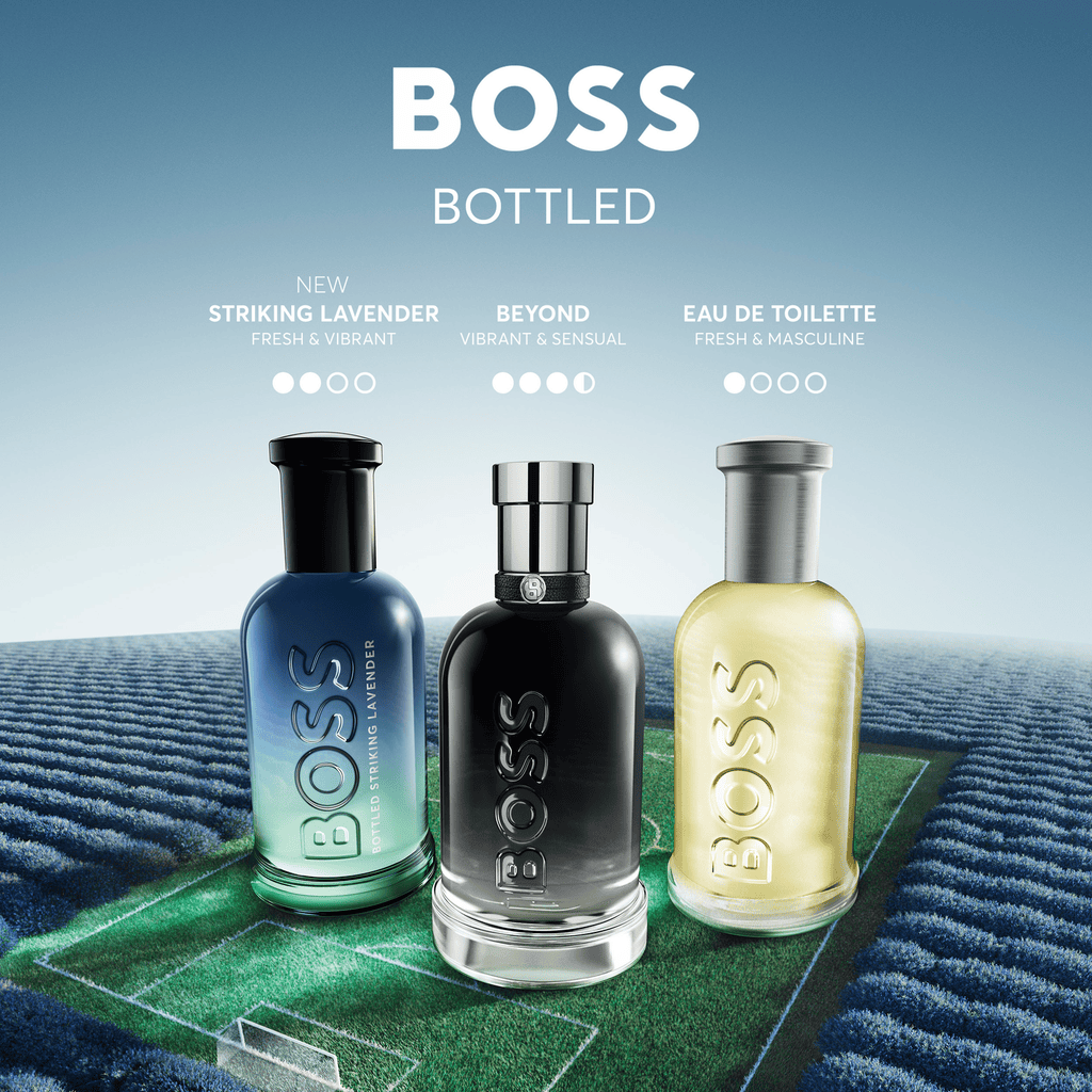 Tanke sommerliche Energie mit BOSS Bottled Striking Lavender, einer neuen Frische, mit der du punkten kannst. Mit üppigen, raffiniert inszenierten Lavendel-Akkorden bringt diese limited Edition den Tag in Schwung – und setzt ein Statement mit einem kühnen neuen Rhythmus. Geladen mit purer Intensität entfacht dieser Duft die Sinne – mit klaren, mineralischen Noten, die Energie versprühen. Mit einem unerwarteten Lavendel-Duo verbindet dieses holzige Fougère Eau de Parfum frische Kraft mit cleanen, aromatischen Facetten. BOSS Bottled Striking Lavender wurde von der Meisterparfümeurin Honorine Blanc und der Chefparfümeurin Sophie Labbé kreiert und öffnet sich mit Essenz von weißem Lavendel, um für einen strahlenden, krautigen Auftakt zu sorgen. Lebhafte Essenz von blauem Lavendel pulsiert durch die Herznote und verstärkt ihre maskuline Eleganz mit sanfter Wärme. Ein Moos-Akkord bildet eine erdige Basis und verleiht diesem eindrucksvollen Duft eine Tiefe, die an die holzige Duftsignatur der ursprünglichen BOSS Bottled Düfte erinnert. Der ikonische BOSS Bottled Glasflakon präsentiert sich in einem strahlend blauen Doppellack-Finish, das die verspielte Sommerstimmung des Dufts widerspiegelt. Ein silberner Schriftzug in Heißfolienprägung und eine glänzende schwarze Kappe runden diesen selbstbewussten limitierten Duft ab.