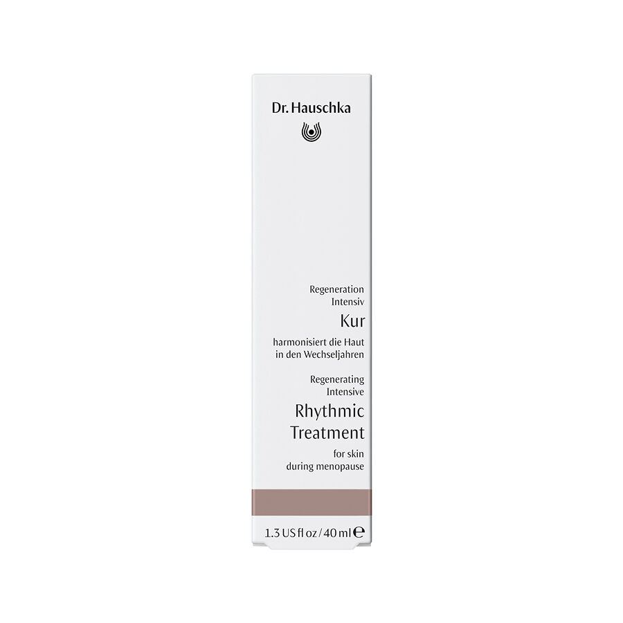 Die Dr. Hauschka Intensivkuren mit ausgesuchten Schätzen der Natur in rhythmisierter Form ergänzen die Basispflege, wenn die Haut aus dem Gleichgewicht geraten ist und einen normalisierenden Impuls benötigt. Für unausgeglichene Haut in den Wechseljahren ist die Intensivkur spezial eine harmonisierende Intensivpflege. Die Komposition mit Rubin, silberhaltigem Argentit, Mönchspfeffer, Traubenkerze, natürlicher Thermalsole und Rosenwasser beruhigt und stärkt die Haut. Sie unterstützt, dass wechseljahrsbedingte Pigmentflecken blasser werden.