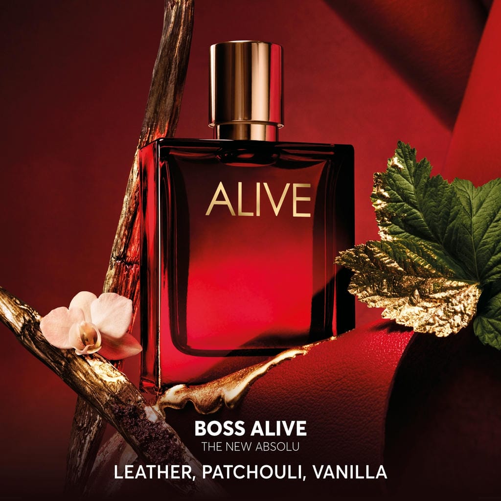 Mit BOSS Alive Absolu genießt man das Leben mit maximaler Intensität. Dieses raffinierte, ledrige, holzige Parfum feiert die Kraft der BOSS Frau mit üppigen, aufeinander abgestimmten Inhaltsstoffen. Als das bisher am höchsten konzentrierte Mitglied der BOSS Alive Duftkollektion vermittelt dieses absolut außergewöhnliche, opulente Parfum für Frauen den Geist von Selbstvertrauen und einem Leben ohne Grenzen. Meisterhaft komponiert von Chefparfümeurin Marie Salamagne, hinterlässt BOSS Alive Absolu mit seiner warmen Ledernote einen starken ersten Eindruck. Kostbare Patschuli-Essenz verleiht dem Duft in der Herznote einen lebendigen Akzent, während ein betörender Vanille-Akkord in der Basisnote einen langanhaltenden Nachhall hinterlässt, der an die olfaktorische Essenz von BOSS Alive erinnert. Eine glänzende metallische Kappe vervollständigt den Glasflakon des Dufts und verleiht ihm einen majestätischen goldenen Touch. Die tiefrote Lackierung des Flakons spiegelt die Leidenschaft der BOSS Alive Frau und die Üppigkeit dieses Parfum Intense wider.
