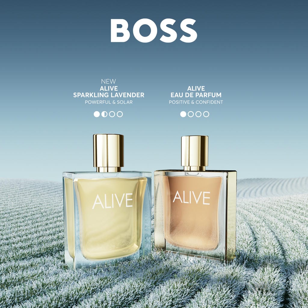 BOSS ALIVE Sparkling Lavender bringt den Sommer zum Leuchten mit einem strahlenden neuen Damenduft in limitierter Edition. Mit einem Hauch von floralem Lavendel verkörpert dieser belebende Duft grenzenlose Lebensfreude und Weiblichkeit. Dieser blumig-holzige Duft besticht durch seine positive Ausstrahlung und verströmt einen lebhaften Rhythmus von Unabhängigkeit. BOSS ALIVE Sparkling Lavender wurde von der Chefparfümeurin Marie Salamagne kreiert und öffnet sich mit strahlenden, lebhaften Noten von weißem Lavendel, die in eine anmutige grüne Herznote aus Jasmin übergehen, die den blumigen Charme des Dufts unterstreicht. Ein cremiger und dennoch erfrischender Kokosnuss-Akkord sorgt für eine unverwechselbare Note und hinterlässt einen betörenden Nachhall. Der ikonische BOSS ALIVE Flakon wird von einem transparenten Lackfinish in einem strahlenden Blau geziert, das die sommerliche Stimmung dieses Duftes widerspiegelt.