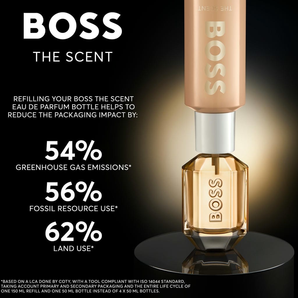 Entfessele die Macht der Anziehungskraft mit BOSS The Scent for Her, ein ikonisches Eau de Parfum, das die starke, unverkennbare Chemie einfängt, die zwischen einem Powerpaar herrscht. Von dem Zusammenspiel eines starken Paares inspiriert, vereint dieser ambriert-blumig-fruchtige Duft intensive Kontraste, um eine unwiderstehliche, faszinierende Kraft entstehen zu lassen. Er eröffnet mit üppigem natürlichen Pfirsichextrakt, der eine ekstatische Energie verströmt und in der Herznote auf ein samtiges, opulentes Osmanthus-Bouquet trifft. Die aufgeladene Spannung wird durch sinnliche Noten von weißem Moschus noch verstärkt, die den Nachhall in einer fesselnden Umarmung verankern, die die Sinne berührt. BOSS The Scent Eau de Parfum for Her ist eine Neuinterpretation bestärkender Sinnlichkeit in einem eindrucksvollen, nachfüllbaren Flakon mit dem BOSS Logo auf transparentem Glas und dem Doppel-B-Monogramm von BOSS auf einer Kappe aus eisig-goldenem Metall. Die facettenreiche Form, die das Augenmerk auf sich zieht, spiegelt das sinnliche Kräftemessen in diesem pfirsichfarbenen Duft wider und erinnert an die vielen Seiten eines Powerpaares. Alle Größen wurden so konzipiert, dass sie mit dem separat erhältlichen 150-ml-Nachfüllflakon wiederbefüllt werden können.