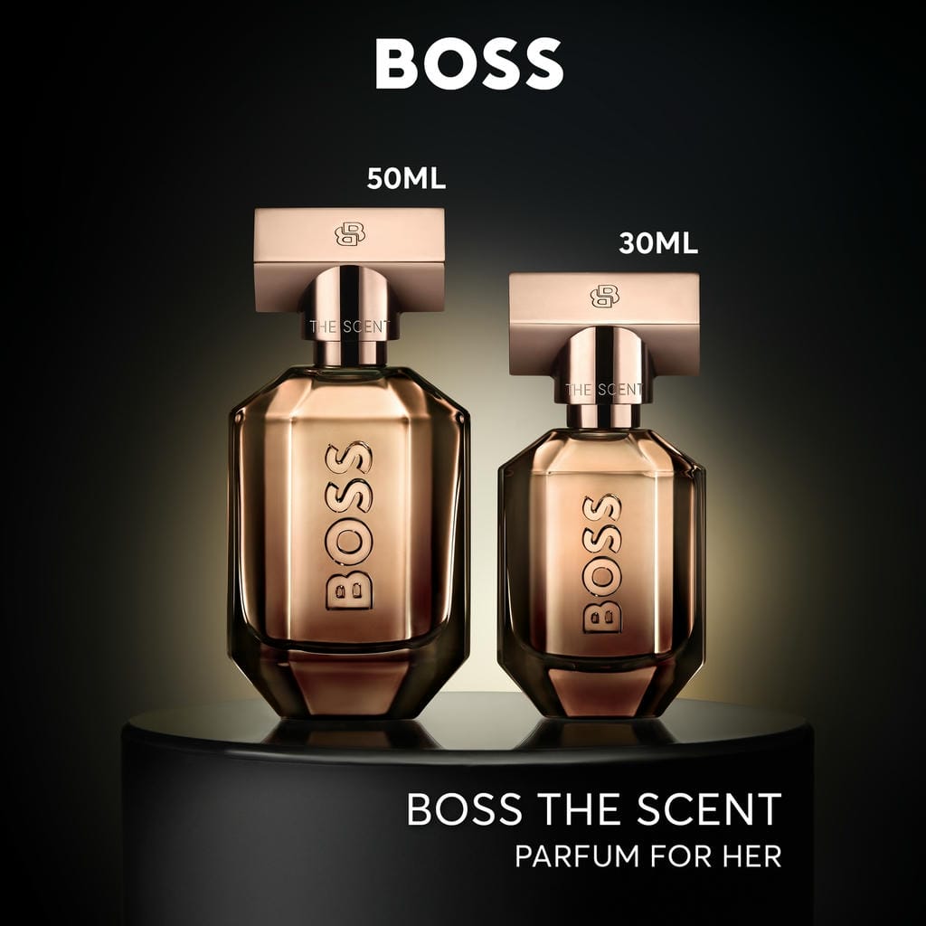 Spüre die Macht der Anziehungskraft mit BOSS The Scent Parfum for Her, einem üppigen, außerordentlich sinnlichen Duft, der die ultimative Anziehung eines Powerpaars einfängt, der man unmöglich widerstehen kann. Dieser ambriert-blumig-holzige Duft, der starke Gegensätze vereint, ist eine kraftvolle Interpretation des Originaldufts von BOSS The Scent, der eine alles verzehrende, sinnliche Kraft erzeugt. Er öffnet sich mit einer Überdosis betörender Orangenblüte vor dem Hintergrund der umhüllenden Wärme von Vetiver. Die erhitzte Spannung wird durch ätherisches, strukturiertes Akigalaholz weiter gesteigert, das die Basis mit einer aufsehenerregenden, die Sinne entfachenden Umarmung durchzieht. BOSS The Scent Parfum for Her interpretiert die Kraft der Sinnlichkeit in einem auffälligen Flakon neu, der von dem übergroßen BOSS Logo auf in hellem Taupe lackiertem Glas und einer roségoldenen Kappe mit doppeltem B-Monogramm geziert wird. Die facettenreiche Form, die das Augenmerk auf sich zieht, spiegelt das sinnliche Kräftemessen in diesem berauschenden Duft wider und erinnert an die vielen Seiten eines Powerpaars.