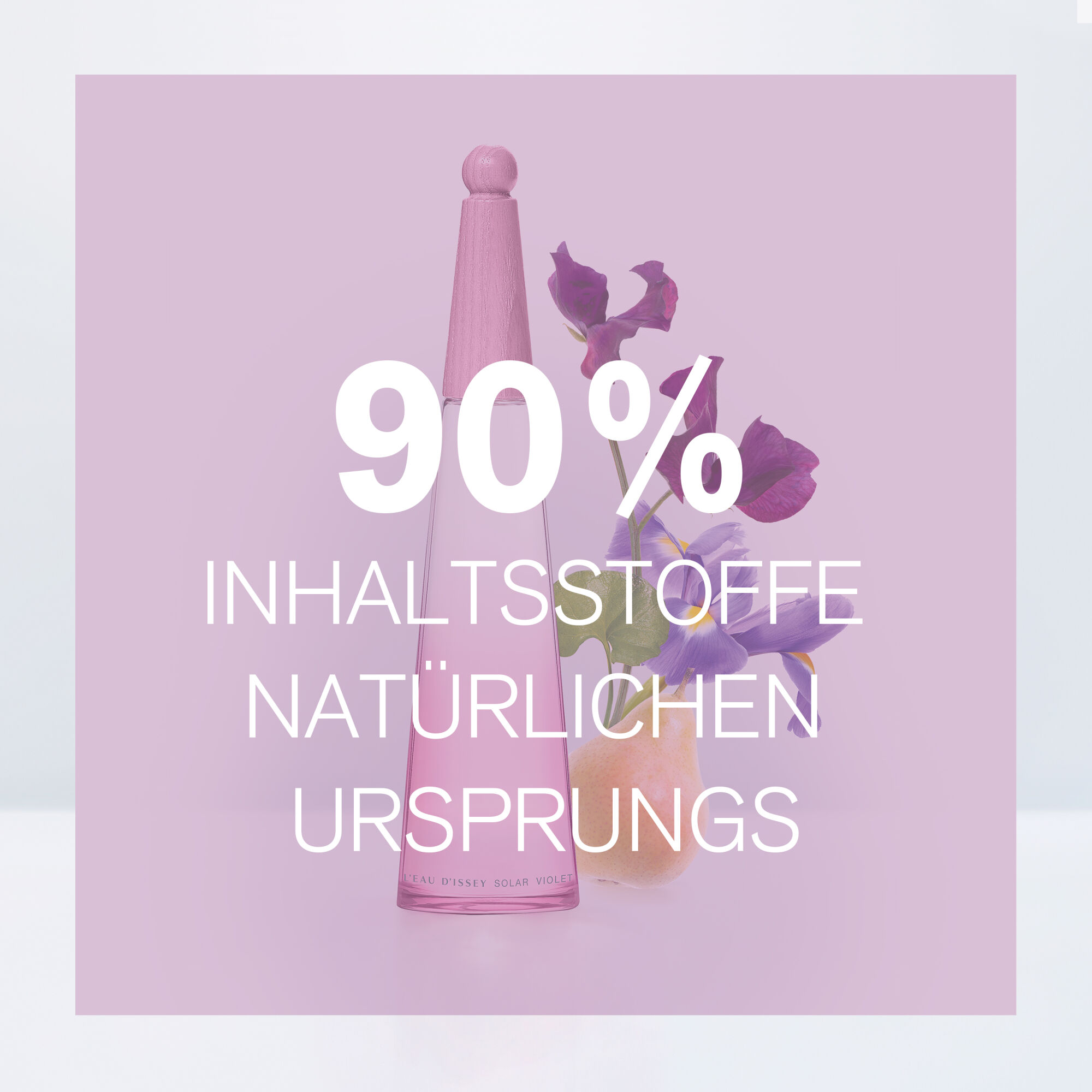L'Eau d'Issey Solar Violet Eau de Toilette Intense - der leuchtende neue Damenduft von Issey Miyake L'Eau d'Issey Solar Violet ist der neue Damenduft von Issey Miyake - ein Duft, in dem Wasser auf Materie im Licht des Frühlings trifft. Geboren unter der Sonne, verbindet er Wärme mit Frische und Zartheit mit Leidenschaft, um einen modernen Veilchenduft voller Kontraste zu schaffen.Ein leuchtender, blumiger Duft für die Frau. Erleben Sie eine fesselnde Begegnung mit der Sonne in diesem blumig-fruchtigen Duft, der mit den saftigen Aromen eines sonnenverwöhnten Birnenakkords eröffnet. Diese hellen Kopfnoten unterstreicht die pudrige und leuchtende Essenz von 100% natürlichen Veilchenblättern in der Herznote, die nachhaltig in Ägypten gewonnen werden. In der Basis des Duftes, gewinnt die Zartheit des Veilchens durch die elegante, seidige Basisnote der Iris weiter an Struktur.Ein Parfum im Einklang mit der Natur. Der patentierte Verschluss besteht zu 100% aus Holz und wird ohne Plastik hergestellt, was die Umweltbelastung reduziert. Der Flakon besteht zu 20% aus recyceltem Glas. Die Verpackung besteht aus Material aus nachhaltig bewirtschafteten, FSCTM-zertifizierten Wäldern und anderen kontrollierten Quellen. Dieses Parfum ist eine Hommage an die Schönheit der Natur und besteht zu 90 % aus natürlichen Inhaltsstoffen.Ein von der Natur inspirierter Parfumflakon Der Flakon und die Kartonage von L'Eau d'Issey Solar Violet sind von den Blütenblättern des Veilchens inspiriert und haben einen zarten violetten Farbton. Der ikonische Flakon aus transparentem Glas spiegelt die Reinheit des Wassers wider, während der reine Holzverschluss die Dichte der Materie widerspiegelt.
