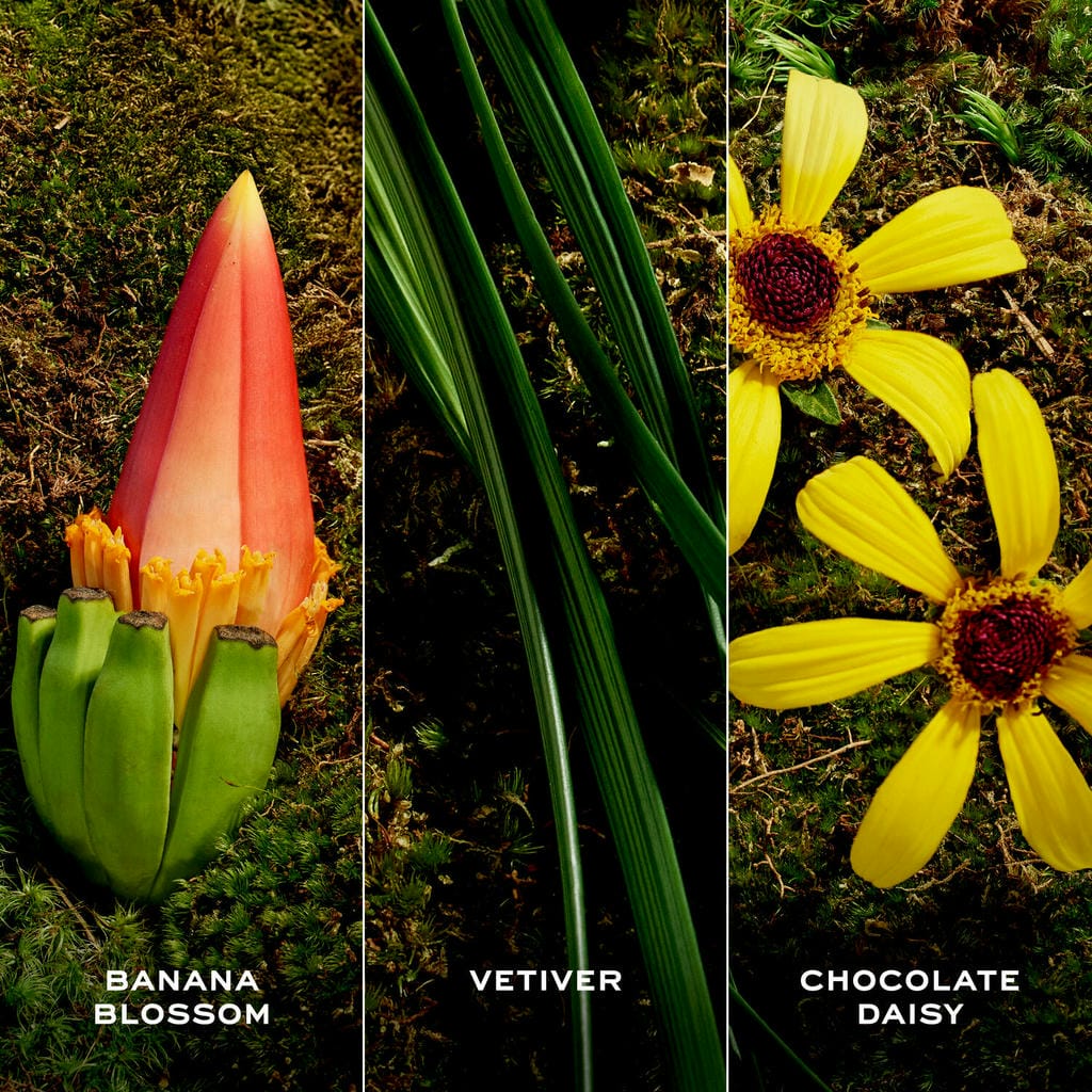 Erlebe die ungezähmte Schönheit der Natur mit einem Duft, der so frei und unbeschwert ist wie ein Wildblumenstrauß. Das verspielte, unkonventionelle Marc Jacobs Daisy Wild Eau So Extra vereint den seltenen, schokoladigen, blumigen Duft der echten Schokoladenblume mit cremiger Banane, köstlichem Birnennektar und einer warmen Nuance von Vanille und Amber. Ein blumiger Gourmand-Duft, der jugendlich, lebensfroh und zugleich mühelos elegant wirkt - eine Komposition, die die Süße von Nostalgie mit dem aufregenden Reiz des Unerwarteten verbindet. Marc Jacobs Daisy Wild Eau So Extra verleiht dem Duft durch sein einzigartiges Flakon- und Kappendesign eine Extraportion Raffinesse. Inspiriert von einem Wildblumenstrauß, der in leuchtenden Farben erblüht, wird der Flakon von einer Mischung gelber, rosa, lila und grüner Blumen geziert, während verspielte Blütenstiele durch einen von einem goldenen Logo gezierten Flakon in einer dunkleren Nuance schimmern. Das Ergebnis: Ein Flakon, der edel, kostbar und einzigartig ist, zugleich aber dennoch ein verspieltes und lebendiges Design hat.