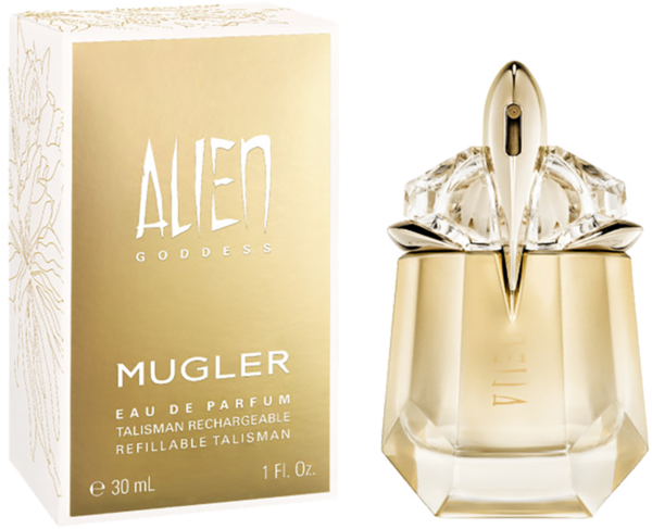 Lassen Sie sich von den Aromen von MUGLER Alien Goddess Eau de Parfum betören und erwecken Sie Ihre innere Sonnengöttin. Finden Sie das Licht in der Dunkelheit mit diesem hoffnungsvollen Damenduft voller Lebensfreude. Die orientalischen, fruchtigen, floralen und holzigen Duftnoten von Alien Goddess entfalten sich nacheinander und verschmelzen zu einem unvergesslichen Damenparfum: Strahlende Kopfnote: Zunächst tritt die italienische Bergamotte hervor. Wie die Sonnenstrahlen eines Sommertages verbreitet diese prickelnde Duftnote ihre positive Energie. Zauberhafte Herznote: Der Mittelpunkt der Komposition des MUGLER Alien Goddess Eau de Parfum ist die goldene Blüte Jasmin Grandiflorum. Sie steht für Sinnlichkeit und Weiblichkeit. Sinnliche Basisnote: Seinen mysteriösen Abschluss findet der Damenduft von MUGLER mit dem vollmundigen, weichen Duft von satter, süßer Vanille. Die Extravaganz dieses edlen Dufts aus exklusiven Inhaltsstoffen spiegelt auch der Flakon wieder. Mit seinen goldenen Elementen und metallisch glänzendener Lackierung steht er auf Ihrem Badezimmerregal wie ein besonderer Talisman, in dem sich das Sonnenlicht auf wunderschöne Weise spiegelt. Im Interesse der Nachhaltigkeit kann das MUGLER Alien Goddess Eau de Parfum einfach wieder aufgefüllt werden.