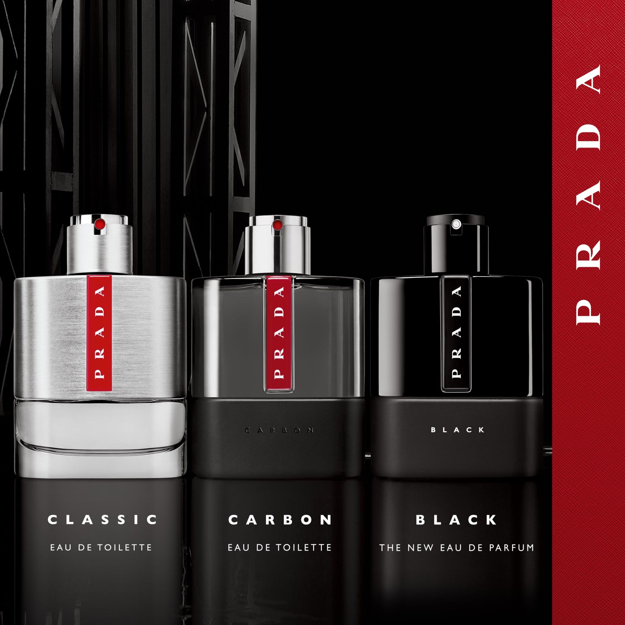 Mit Luna Rossa Black erschließt Prada ein neues Luna Rossa Territorium: urbaner Lifestyle – cool, selbstbewusst, modisch, luxuriös! Es geht darum, den Einfluss des eigenen Umfelds bewusst wahrzunehmen und auf sich wirken zu lassen. Amber, Bergamotte und Patschuli verschmelzen zu einem verführerisch holzigen Eau de Parfum voller maskuliner Energie, das dem Träger Eleganz in jeder Lebenslage verleiht. Der Flakon greift in gewohnter Weise den ikonischen Streifen der Prada Accessoires auf, der passend für Luna Rossa Black in Schwarz erscheint.
