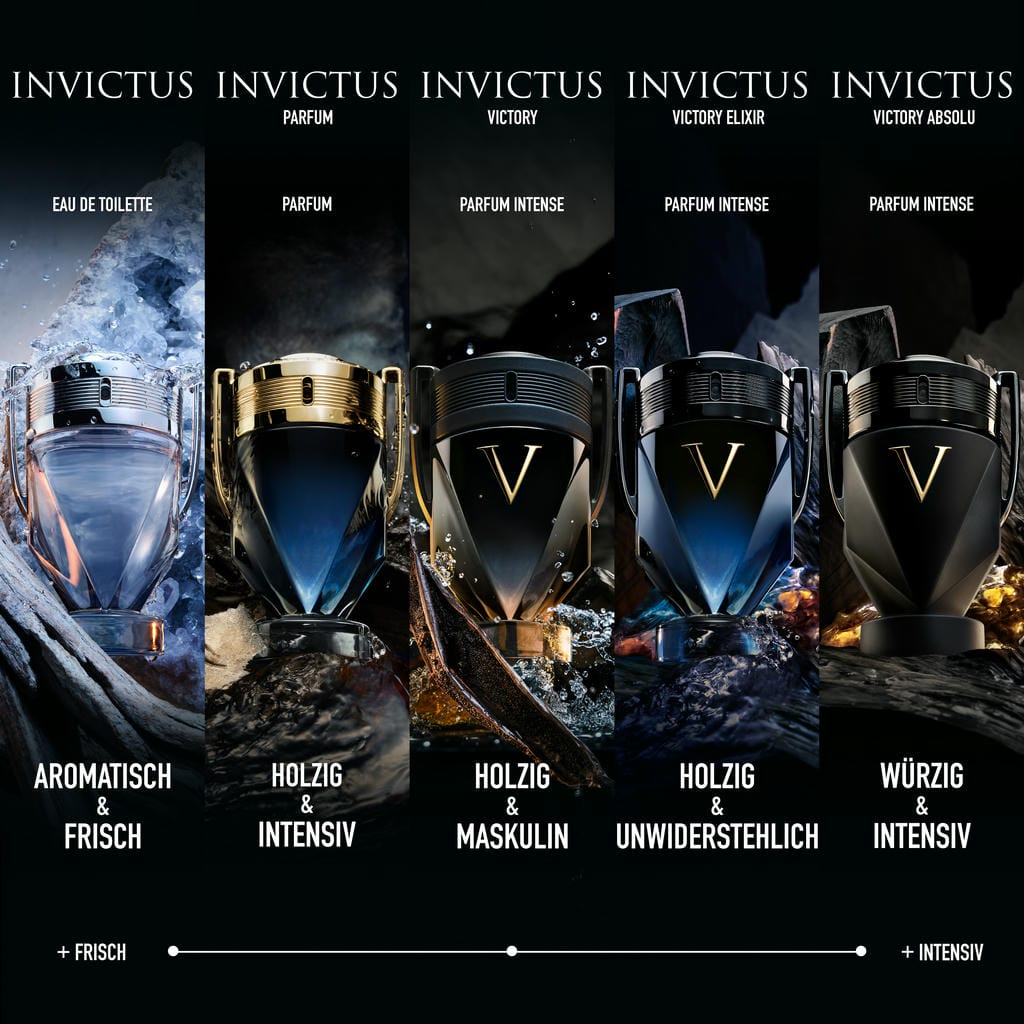 Entdecke Invictus Victory Elixir, den Höhepunkt der Intensität von Invictus. Der neue kraftvolle Herrenduft von Rabanne. Ein starkes Elixir, das alle Grenzen überschreitet. Jetzt ist die Zeit, um Deinen Moment der Unsterblichkeit zu erleben. Ein reichhaltiger, kraftvoller und langanhaltender Duft, bestehend aus würzigen Hölzern und intensiver Frische. Der Duft für absolute Gewinner. Der ultimative Ausdruck des Sieges. Never stop winning!