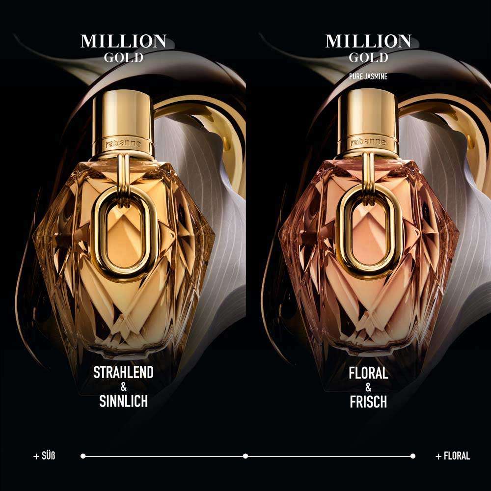 It’s pure gold, honey! MILLION GOLD FOR HER PURE JASMINE symbolisiert Erfolg und leidenschaftlich starke Weiblichkeit. Fühle Dich mit diesem Duft wie die Königin des Goldes, indem Du alle mit Deiner strahlenden Eleganz und Stärke verzauberst. Diese Limited Edition von Rabanne ist eine verführerische, florale Komposition, die kostbare, goldene Zutaten vereint. Sinnlicher, goldgetränkter Jasmin. Ein Hauch von frischer Mandarine. Die sonnige Wärme von Ylang-Ylang. MILLION GOLD FOR HER PURE JASMINE von Rabanne.