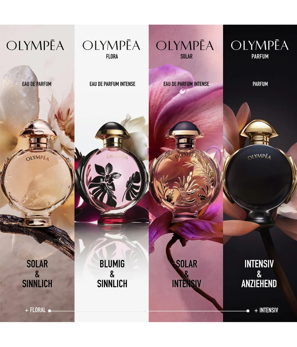Die hellste Facette von Olympea, glorreich im Zenit. Olympéa Solar ist ein kraftvoller und fesselnder sonnig-floraler Duft. Zunächst zarte und weiche Noten von Orangenblüten und Tiaré-Blüten, die ein funkelndes Strahlen wie ein wahrer Sonnenstrahl verbreiten. Dann ein tiefer und sinnlicher Kontrast aus Ylang-Ylang-Noten und Sonnenmoos. Das Gefühl, von einem warmen Sonnenlicht umgeben zu sein, das seinen Duft auf der Haut verbreitet.