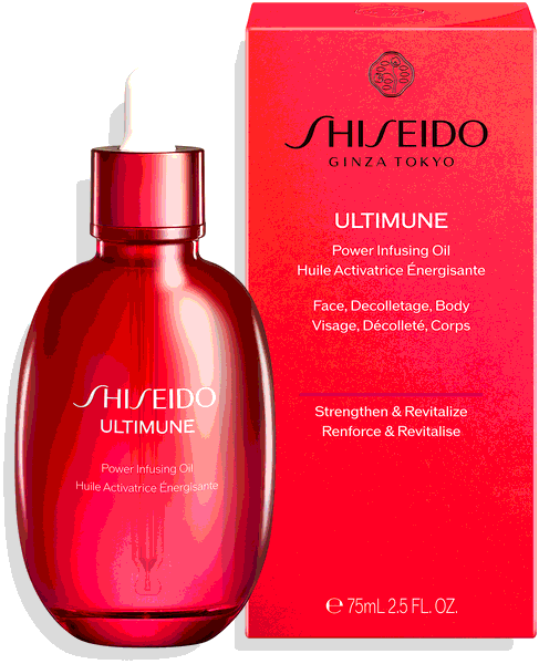 Das Ultimune Power Infusing Oil von Shiseido sagt den Zeichen der Zeit in jedem Lebensabschnitt den Kampf an. Mit zwei leistungsstarken Kamelien-Extrakten unterstützt die einzigartige Formel die hauteigenen Schutzmechanismen, fördert Gleichgewicht und wirkt aktivierend auf wichtige Abwehrzellen. So wird gealterten Zellen optimal entgegengewirkt, noch bevor Anzeichen von Hautalterung auftreten. Darüber hinaus setzt die das Öl für Gesicht, Körper und Haare auf wertvolle Hyaluronsäure und Ectoin, um die Haut optimal mit Feuchtigkeit zu versorgen und ihre natürliche Barrierefunktion zu verbessern