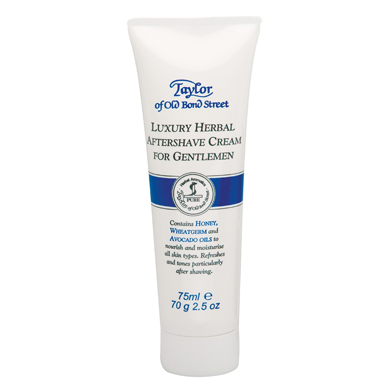 Taylor of Old Bond Street Aftershave Cream Luxury Herbal, 75 ml Direkt nach der Rasur auf die frisch rasierte Haut auftragen, desinfiziert und beruhigt die Haut, spendet wohltuende Feuchtigkeit, nährende, straffende Cream, mit Honig, Avocado- und Weizenkeim-Öl, aus natürlichen Essenzen. Made in GB