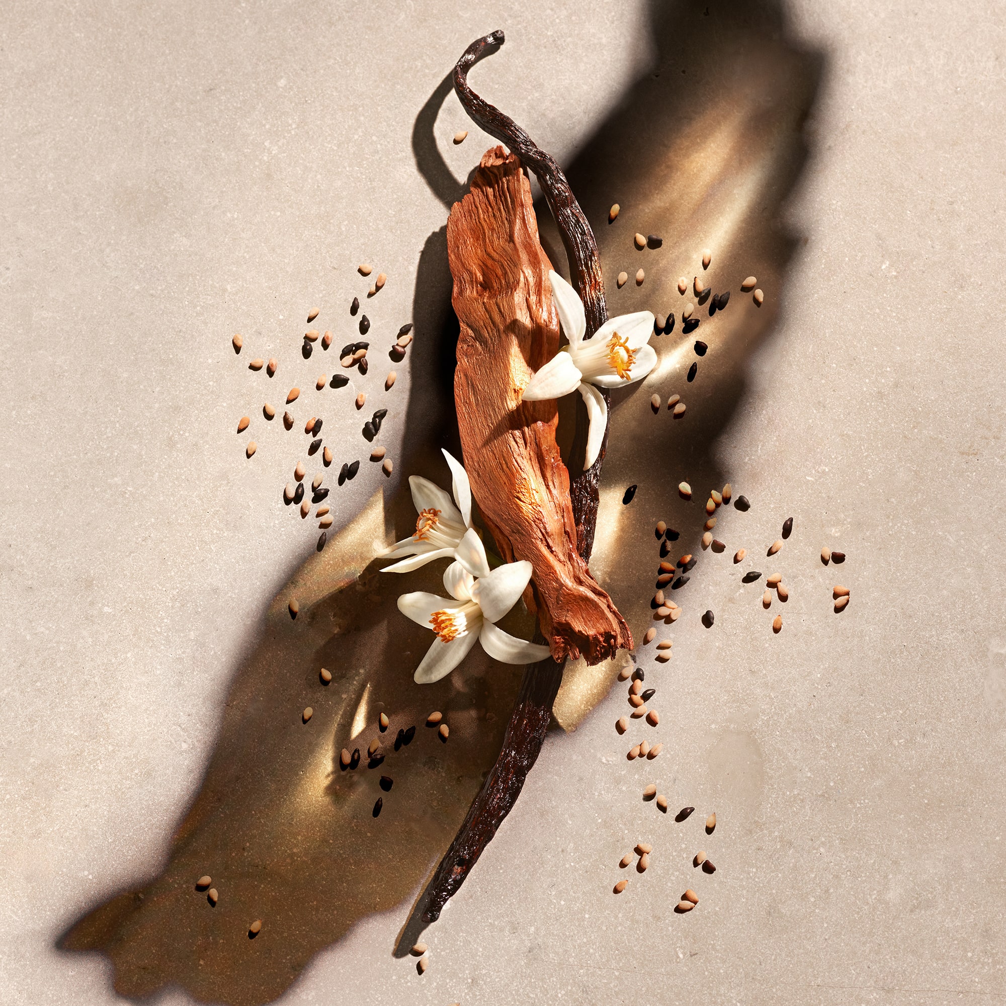 In der Basisnote vermischt sich sinnliche, geröstete Vanille mit cremigem Sandelholz zu einer unwiderstehlichen Duftsignatur.